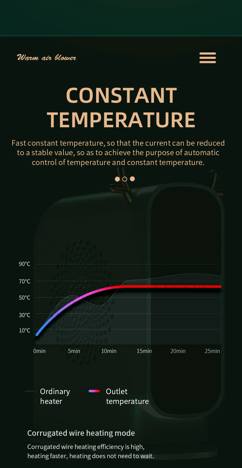 1. Rapid heating: It heats up quickly upon opening.
